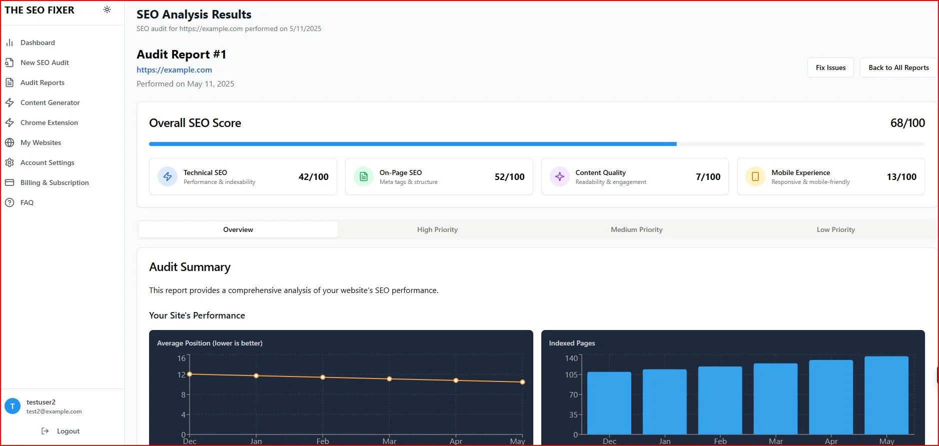 The SEO Fixer Complete comprehensive SEO audits and analysis on any URL with one click. This app allows you to generate content that will increase your SEO and put your website or webapp first.